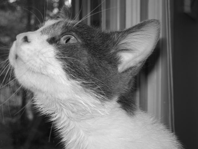 Jenna is just adorable. I love the black and white photos. Kitties sure are cute when their eyes get so big focusing on those squirrels!