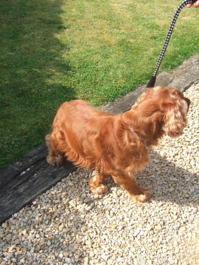 My friend owns a beautiful brown English Cocker Spaniel. His name is Tobey.