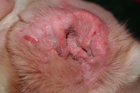 Wow, that's one of the reddest ears I've seen, and I've spent most of my life with cockers. Poor baby, I hope she gets better with the new treatments you try.