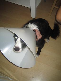 Gonzo broke his toe in Thursday... apparently while playing frizbee by the lake, I think he must've caught a nail in some of the brush. I noticed him licking his paw and he hasn't had allergies this year (probably due to Raw) but they usually do spark up in the Summer. I assumed he had maybe been licking/chewing excessively because there was some dry blood around the digit. So I called the Vet and got an appointment for today. I was looking more closely yesterday, and I realized his nail was crooked on that toe, and there was puss coming out, and it was swollen to twice the size it was supposed to be.