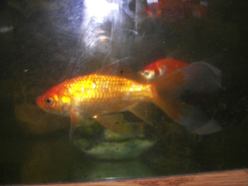 well I moved the babies to their own tank, and it took forever to get any pics to come out okay but here they are! I also took some pics of my large goldfish! there is one small baby and one larger one.