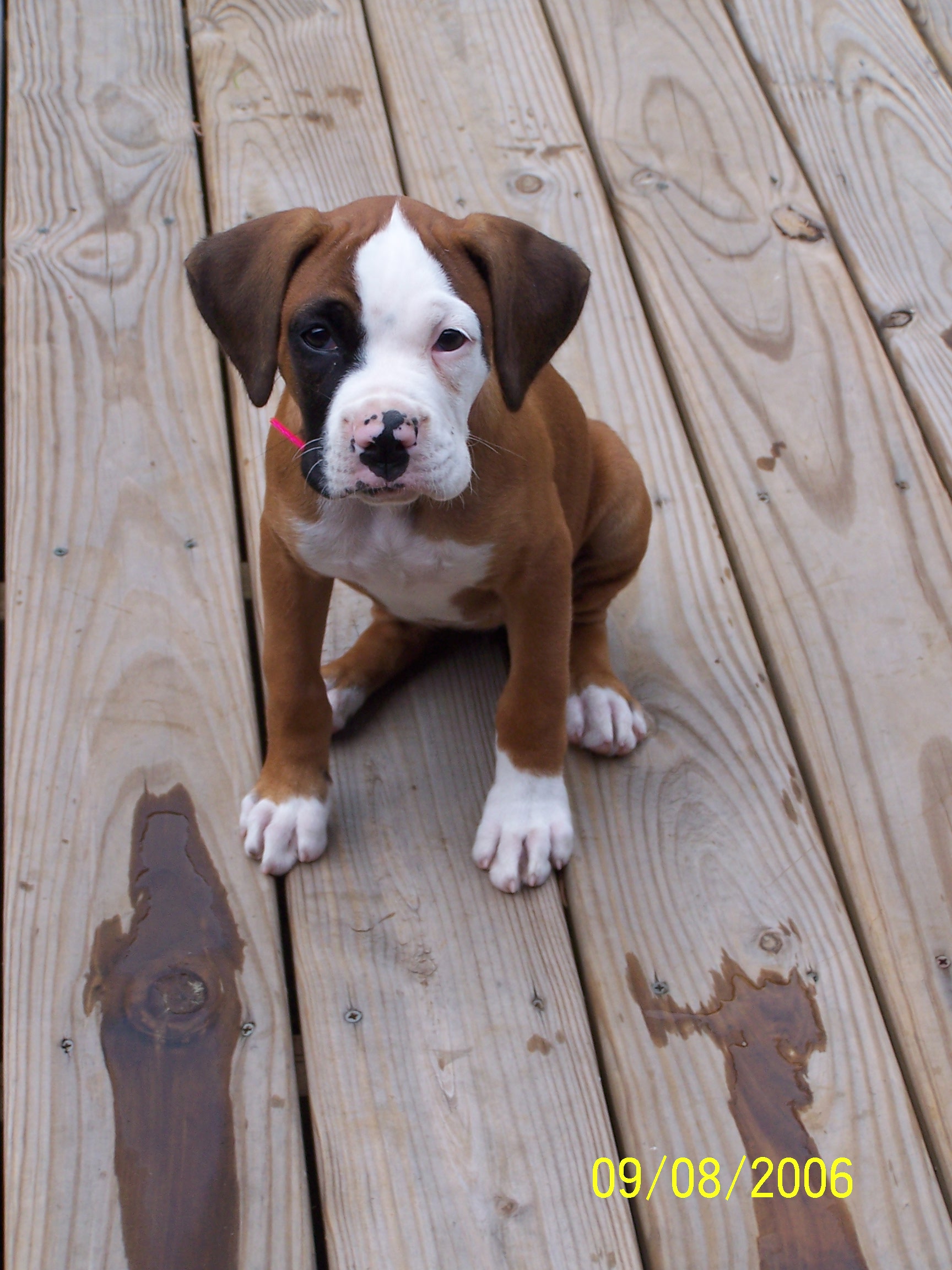 I went out this morning after getting home from work and worked with Daisy some on sitting. She probably sat about 75% of the time without holding a treat to her nose. I also worked on getting her to quit jumping on me and not biting, every time she done one or the other i ignored her until she left me alone and went on to play with something else. She doesnt really get it yet but im just starting to work with her. Here are some more pictures of her. Also how do i get those pictures to show up on my threads and replys under the message i cant figure it out.