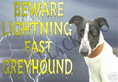 I have a sign that says 'I can make it to the gate in three seconds, can you?' It has what looks like a Lab on it. It's just to let people be aware I do have dogs in the fence, although we don't leave them out alone. I guess it also warns them that they could come running out of the house at any moment.![]()