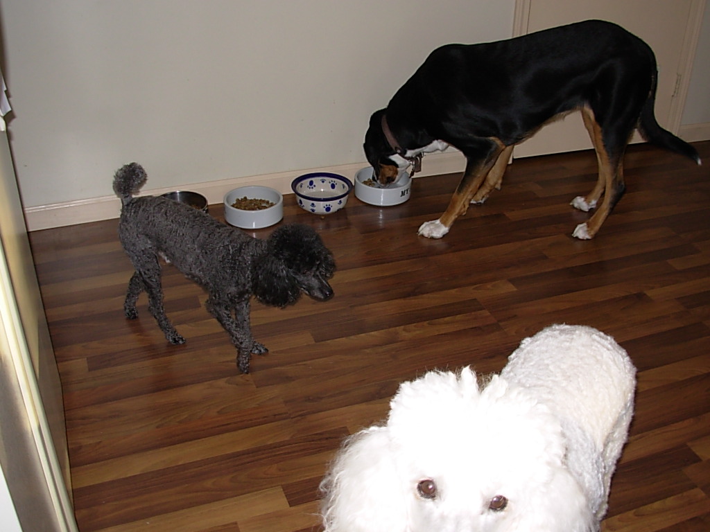 When Grant comes out of his crate in the morning he runs to the door to go out but he has to make a pretty sharp turn to get into the kitchen and he normally slides into the wall/garage door on the way out.