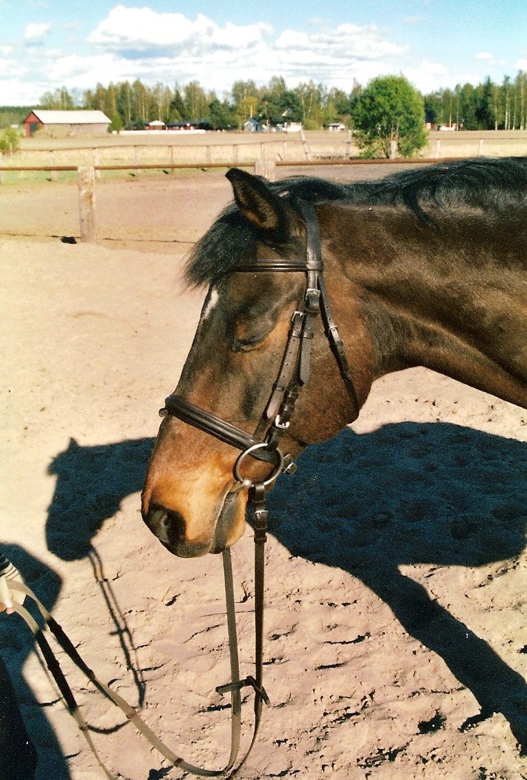 Negat xx is in February 21yor and I've known him for 7 years. He was brought to Finland from Poland when he was 4. He was the first horse I rode in this "riding school stable". His right eye is blind and at first I thought he was ugly horse! But at first I hated U2 and now I couldn't live without either of them! He's not mine, but his owner is now a good friend of mine and I see Negat every weekend and on holidays. Such a lovely guy