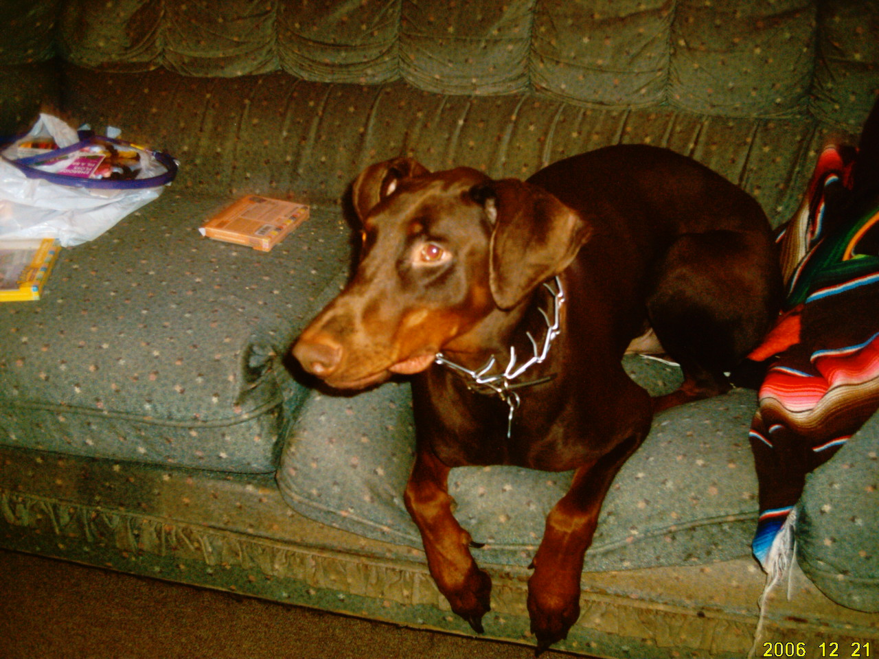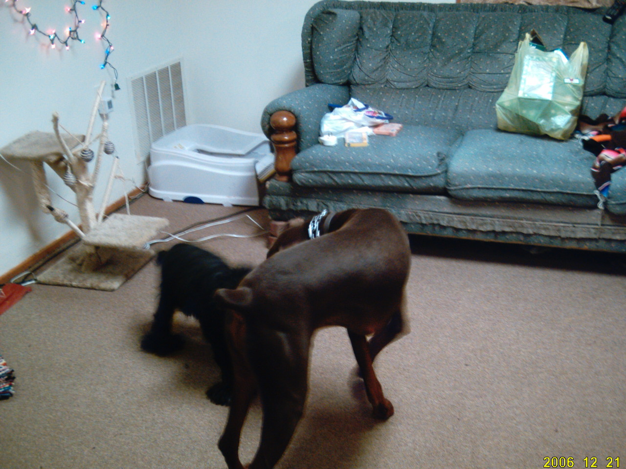 Rusty is looking at the cam from the dog couch, and the others show goofy the cocker being very goofy (she was stealing pressies from the big dogs )