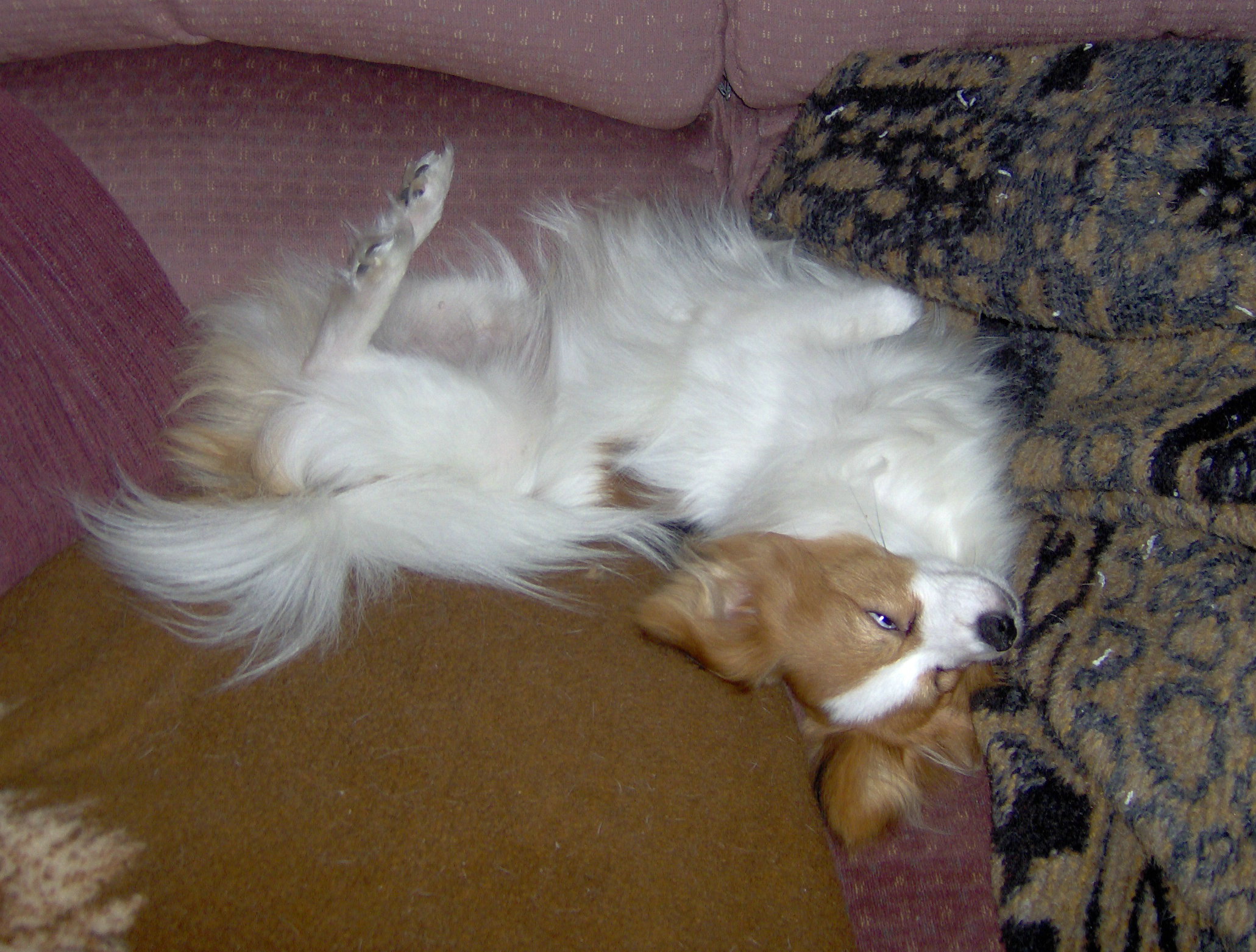 I finally managed the other night to sneak off of the couch to get a pic. of this. This is how he sleeps on the couch. Comfy?...nooooooo. (The 2nd pic. freaks me out though....lol.)