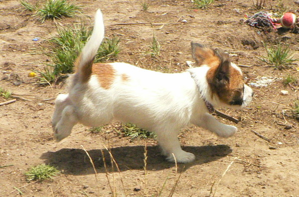 The little man (JRT) is finally home after 9 weeks of waiting (plus the 8 or so weeks before they were born). He has been a good boy so far, and has been romping around and pulling all the toys out of the toy box lol. The poor boy just had a little accident though but nothing a bit of cleaning didn't fix.