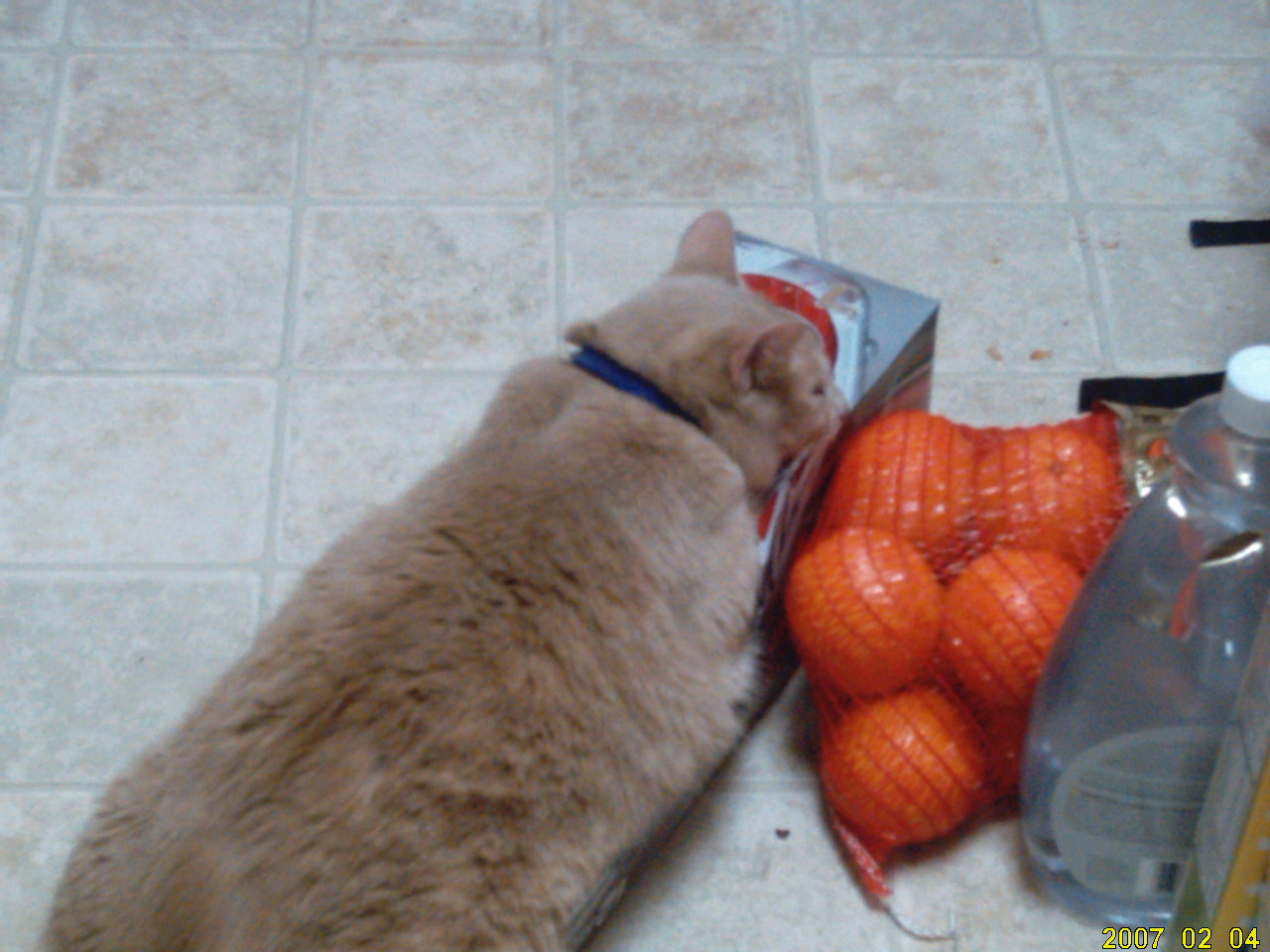 Especially funny as citrus is one of the smells that is supposed to repel cats; recommended to use to keep cats off furniture or away from certain areas. What great photos!!!!