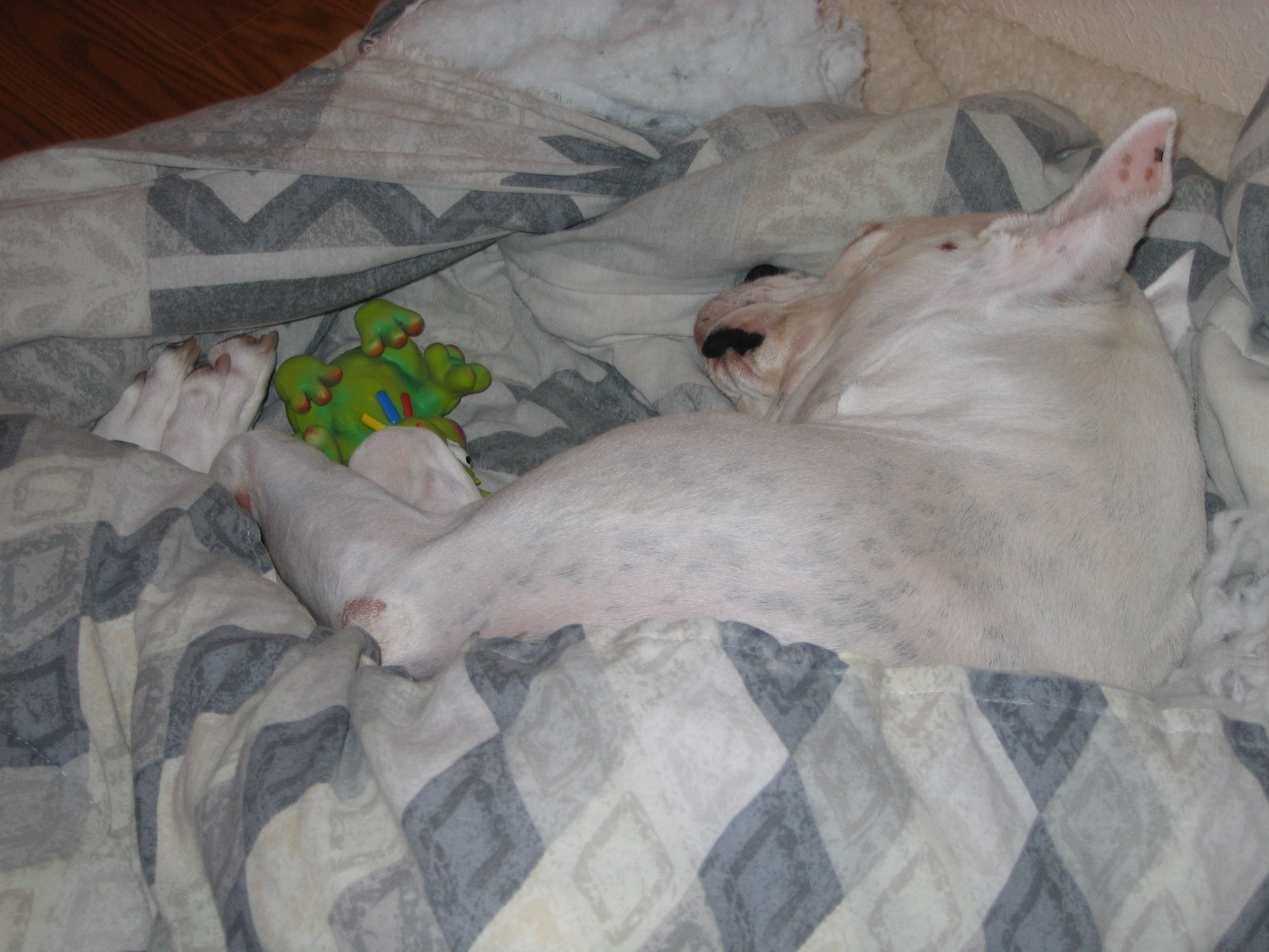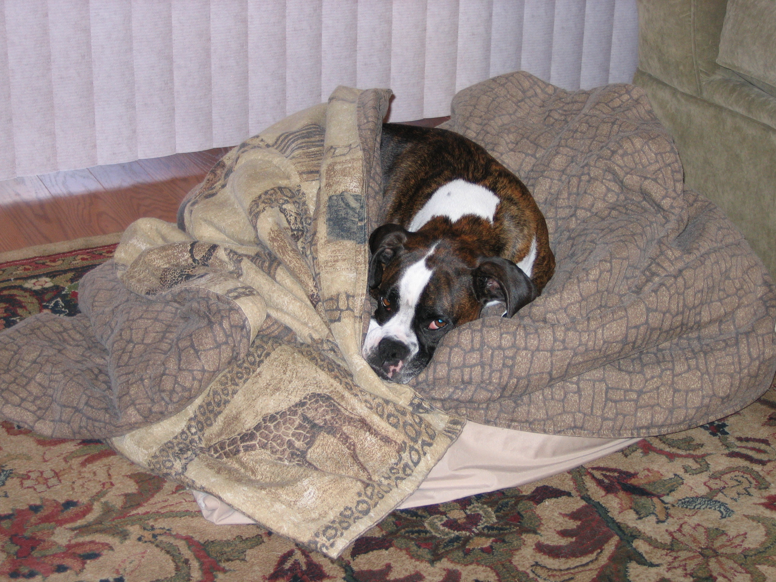 Here are my babies in their beds...white boxer is Duke and reverse brindle is Champ. My hubby does not allow them on the bed