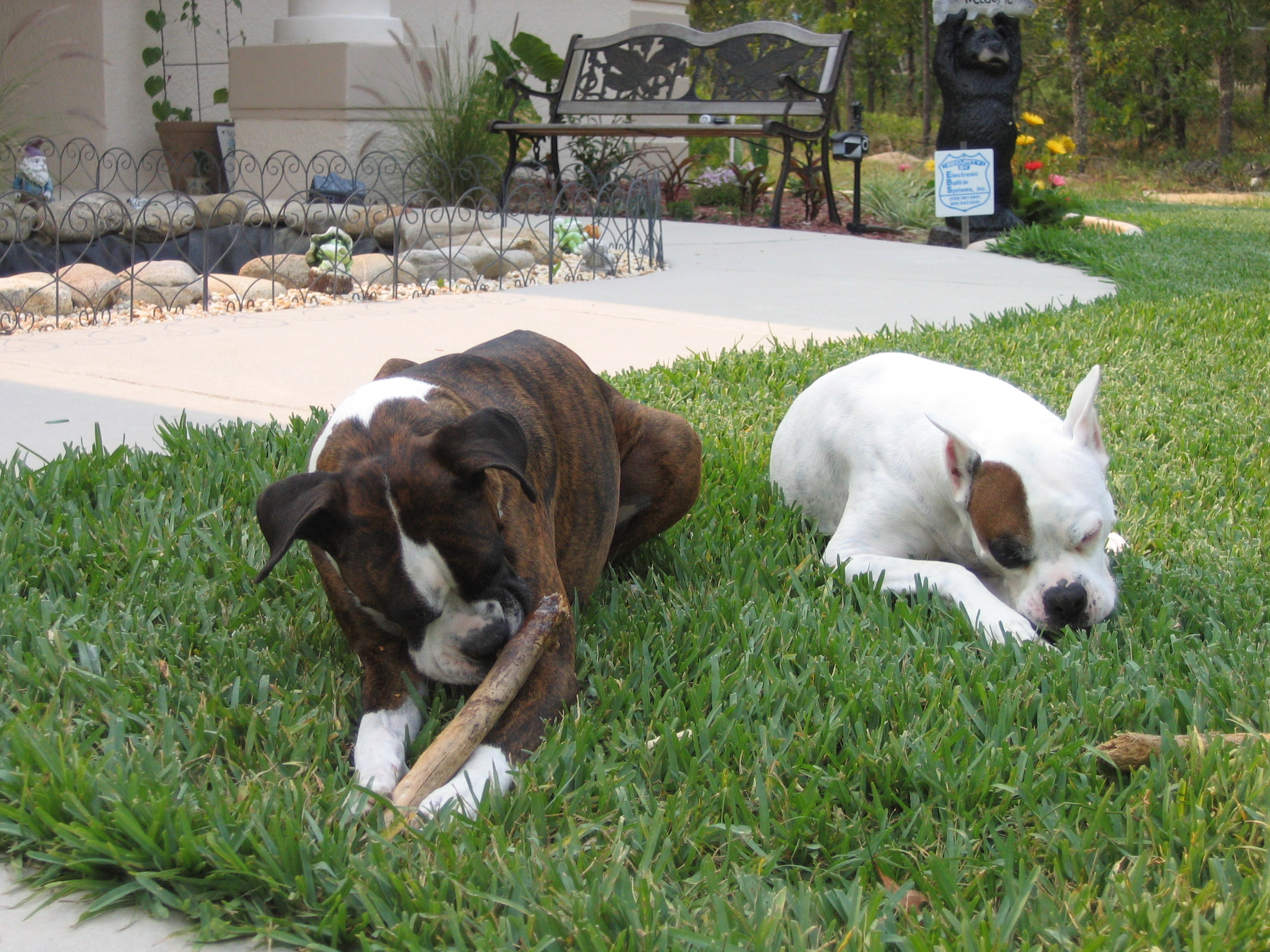 Sorry Guys About The Thumbnails But I Do Not Know How To Do Full Size Photos....duke Is The White Boxer And Champ Is The Reverse Brindle. They Were Outside Enjoying The Beautiful 78 Degree Weather Here In Florida. More In The Next Thread. :d