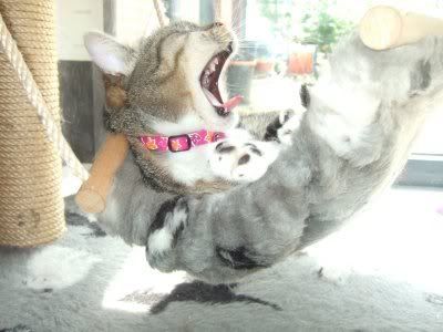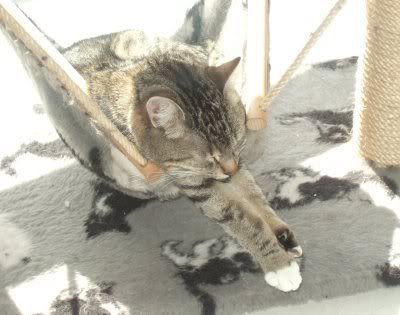 This is Snoopy enjoying her most favorite spot: her hammock!