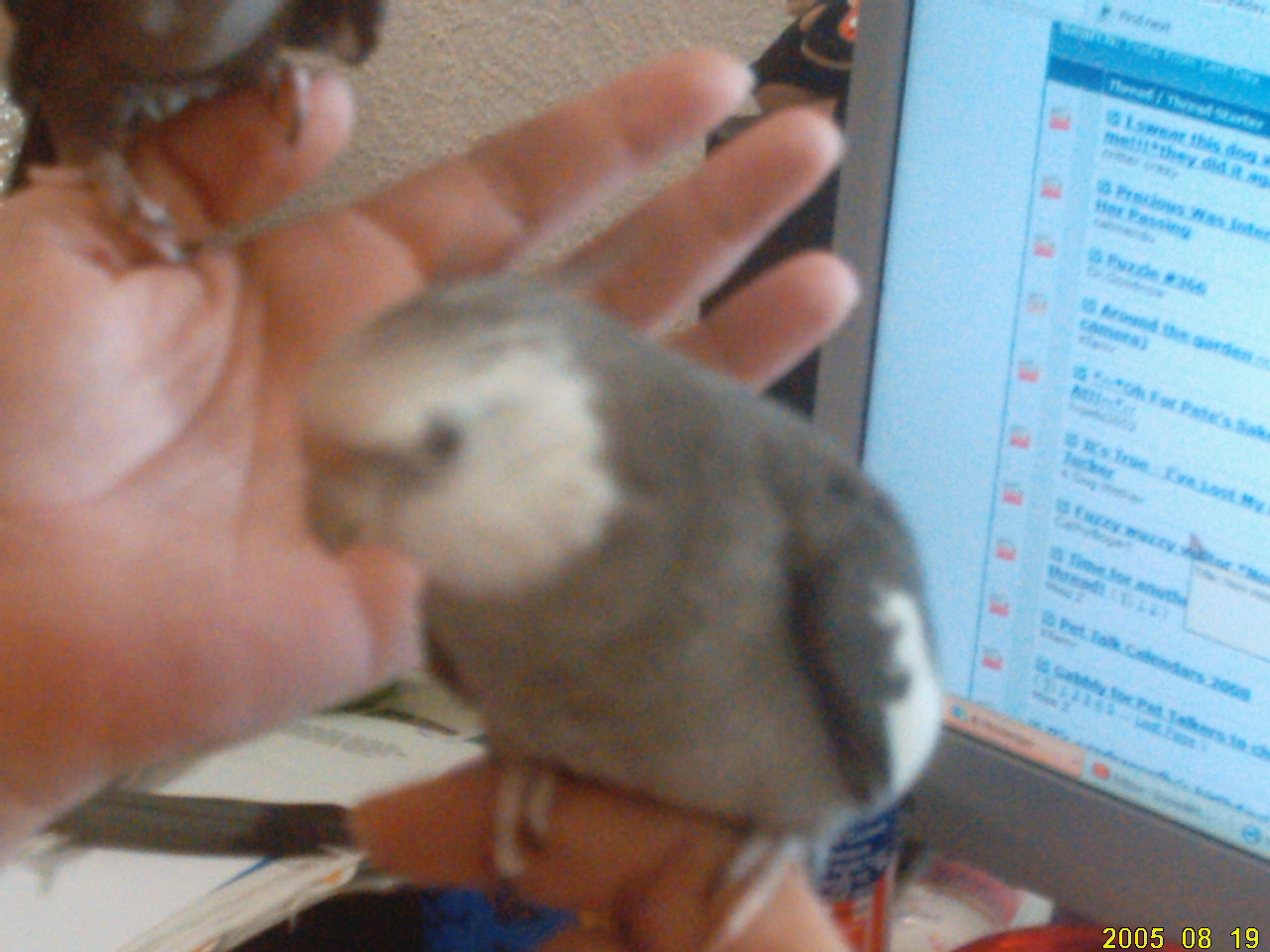 My son is trying to tame them (with a little help from mom) He cleans their cages and pays for all their food toys and treats, so I would love it if our PT family gives a little encouragement oh yeah sending a pic of their proud Daddy!