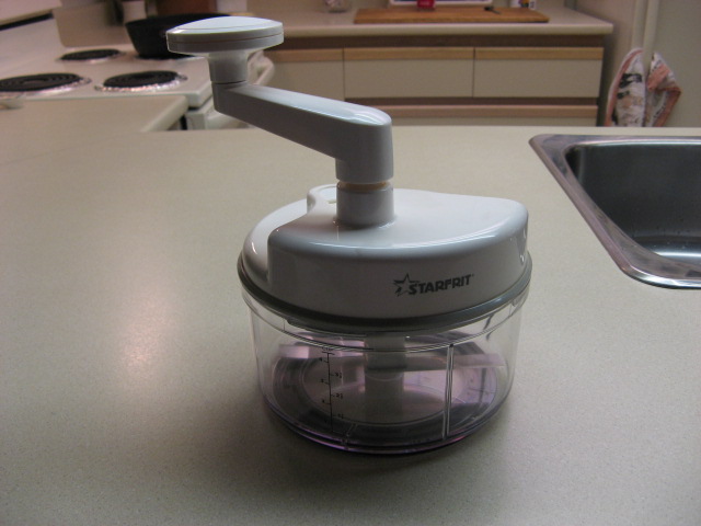 - Starfrit food chopper. This is the manual kind and you turn the handle on top. I bought it and only used it a few times. Works OK but I just never used it after that. See attached pic.