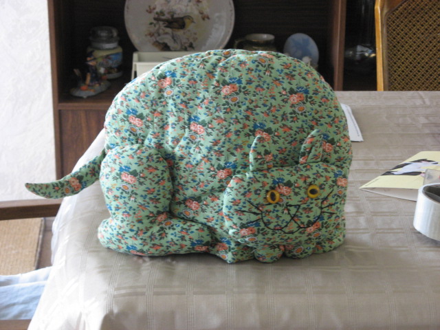 - Floral print Cat Tea Cozy....to put over the tea pot to keep it warm. This belonged to my Mom. She found it at a garage sale but she never used it. It looks to be home-made and is in excellent condition. See pic attached.