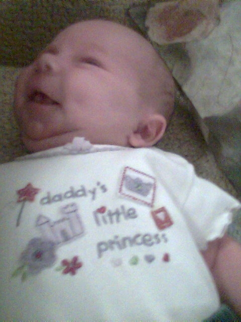 I can't believe my little angel is already 14 weeks old. She has gotten so big and has progressed so much. The doctor says she is very advanced for her age. She has even started eating rice ceral (watered down very thin) because formula doesn't fill her up anymore. (Her doctor ok'ed this). She such an angel. She stands with support and sits with very little support. She only needs the support for balance. She laughs and smiles and she even trys to talk. Hard to believe that something so little can bring such light into your life. I'm uploading some pictures in the next couple of posts so everyone can see and share in what I see everyday.