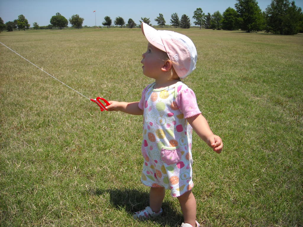 Hi everyone! Guess what mommy, daddy and my doggies and I did on Saturday? We flew a kite! Well, I flew a kite and everyone else just watched. Daddy got it flying for me and handed me the string and I never let go. I even said "uh oh" when it came out of the sky and fell on the ground and daddy went and fixed it so it flew again. Mommy and daddy thought it was so cute and funny that I held on so good. If I happened to let go of the string, the kite would have been long gone, so now we can enjoy the kite more!