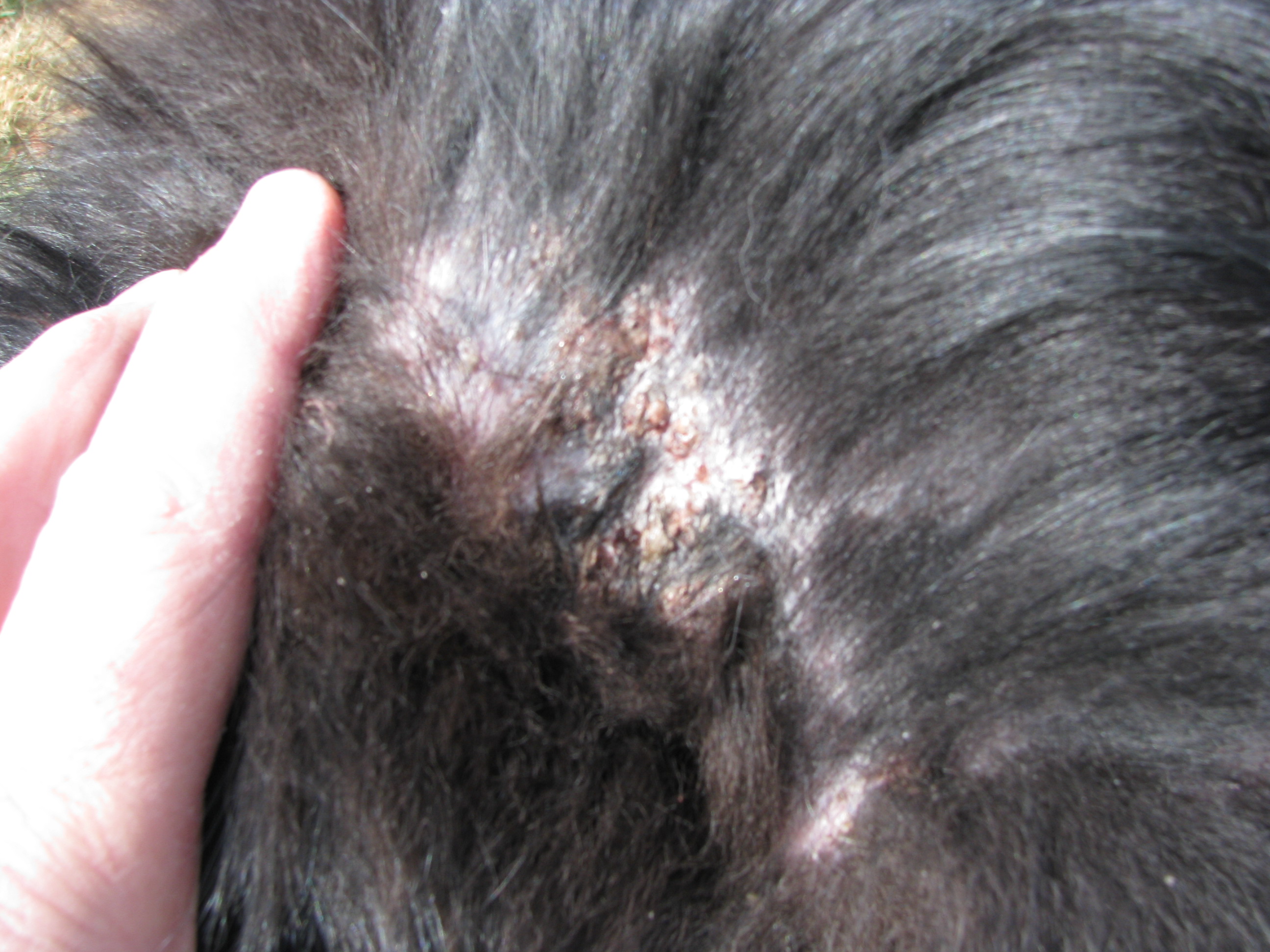 My vet didn’t know what it was so he sent me to a dog dermatologist. Over $3000 later Jet still looked the same .He checked for cancer and was negative. He had many blood tests, yeast tests, fungus tests, cancer tests stool tests, urine tests, mites, fleas, and on and on All negative. The only test that was positive was a bacterial infection. One month of Cephelexin, nothing. One month of Cipro, still nothing.