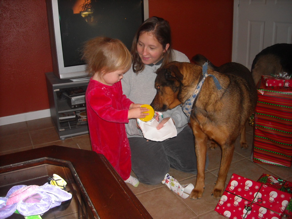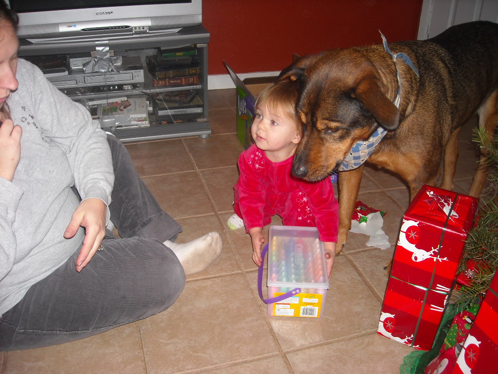 Quinn opened every single one of her presents. I had to show her how to open the first one, then she became so good at opening them, she insisted on opening mommies,daddies, her doggies and kitties gifts as well as her own. I was surprised she was so good at opening them, her cousin, my brothers' youngest boy who's 5 months older then Quinn bored of opening gifts after the very first gift.