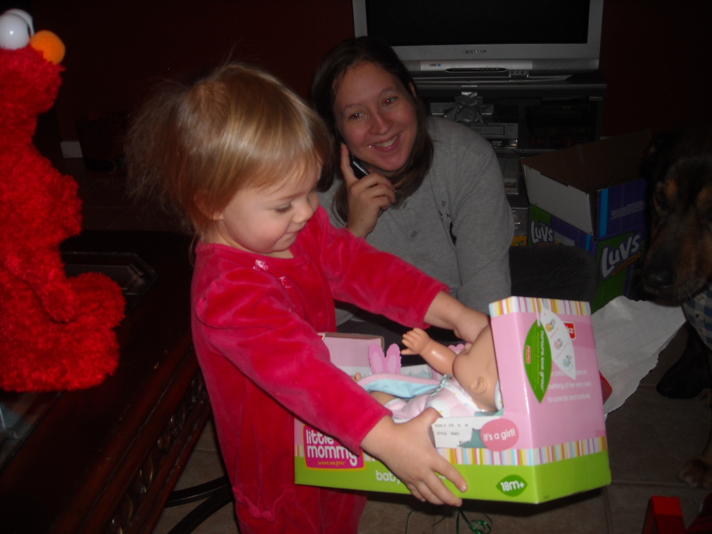 Well here are some cute pics of our Christmas fun. I also have a YouTube video of Quinn opening her Elmo toy. She just LOOOOVES Elmo (although sometimes I wish I could throw him out the window because he never shuts up hehe)