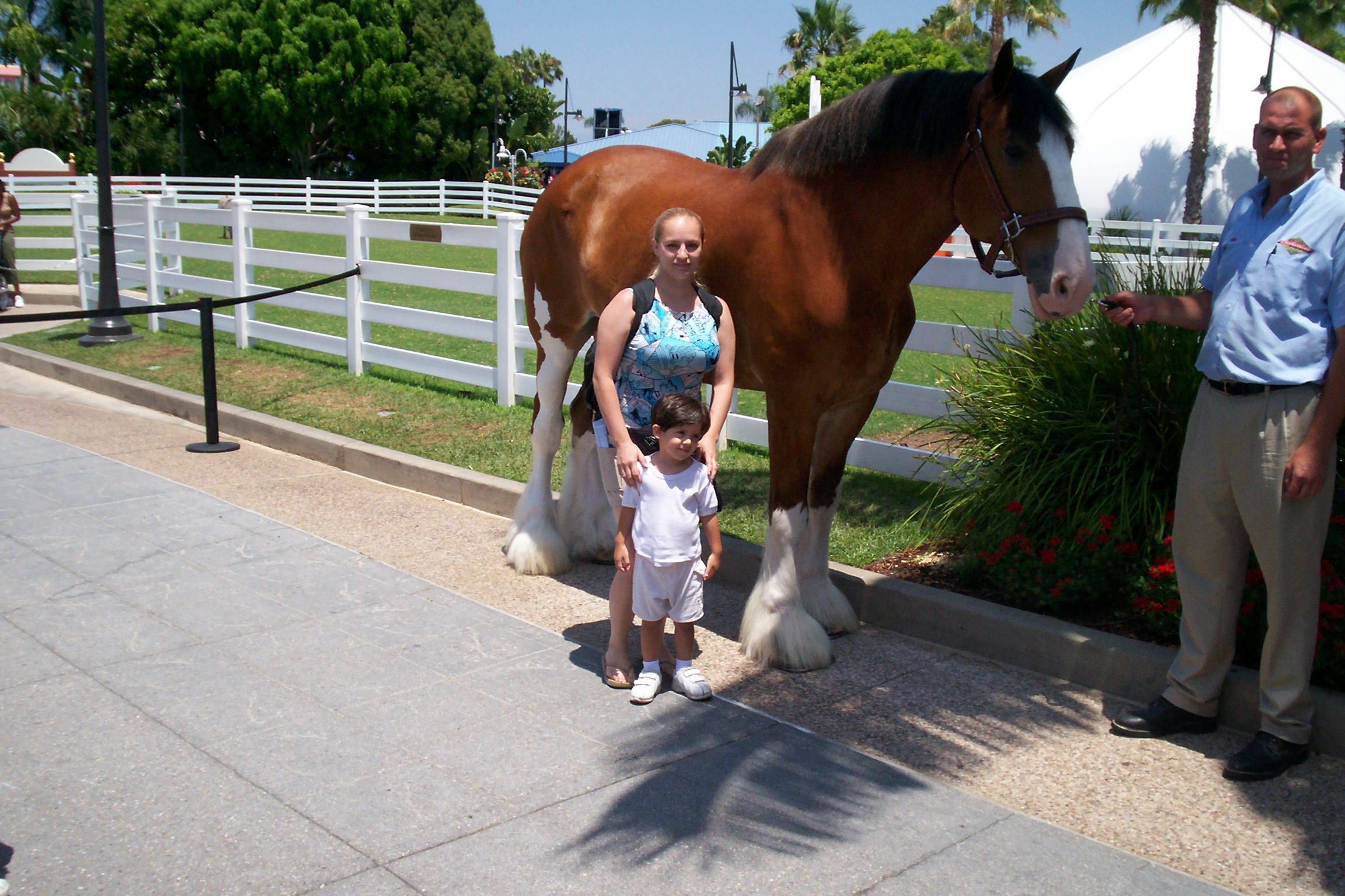 Me with the Clydesdales! Taken 7/98 at Sea World in Ohio. I was SO happy to see them and to get my picture taken with them!