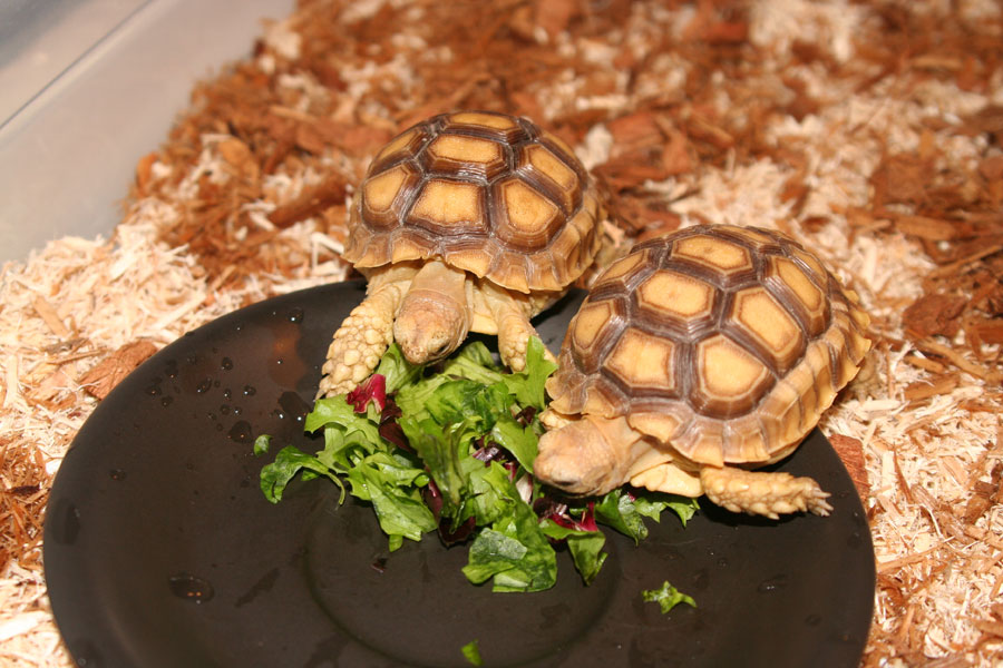 Do sulcata tortoises require a vegetarian diet? What is their shell made of, that it can grow so abnormally due to an improper diet? How sad that they are so little and already someone has taken less than the optimal care of them. I read the article in luckies4me's post - that they need warm temperatures, they don't always move slowly (was Aesop wrong?) and no, they don't swim, which is contrary to what I thought. A very dumb question, are tortoises and turtles different?