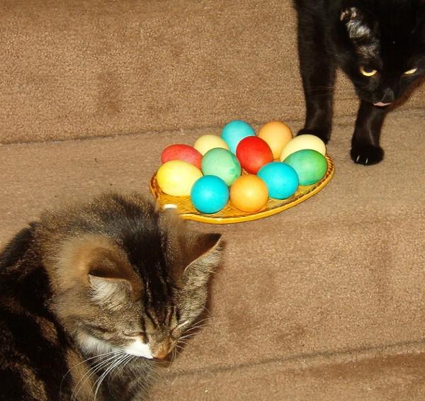 Very cute.Your cats don't seem to know what to do with the Easter eggs.LOL