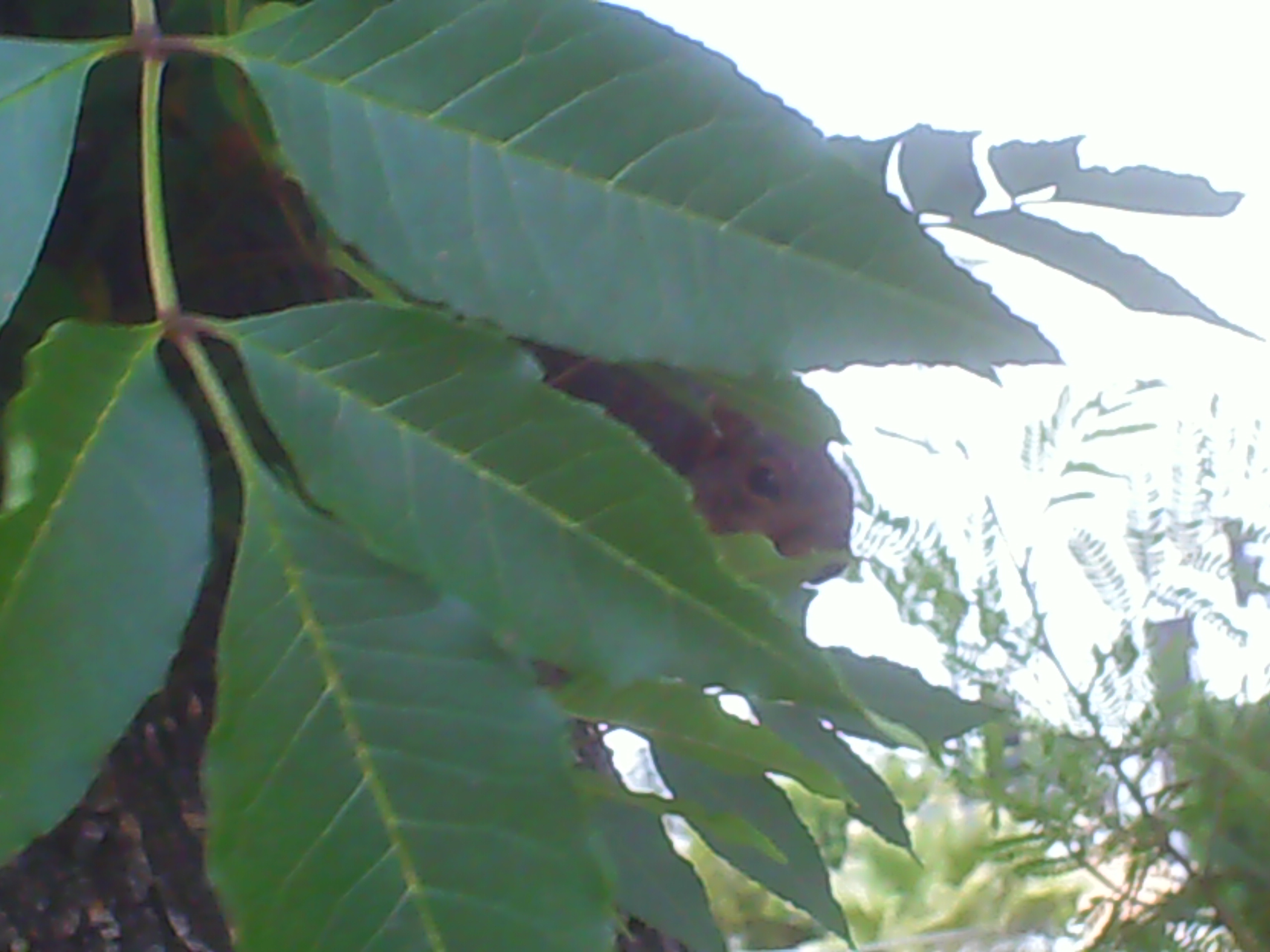 We looked at each other for about two minutes, me taking pictures and it, very quiet. I guess it was thnking me for scaring off the birds and dogs that were bothering him. After graciously allowing me to snap a few, he climbed off into the greenery!
