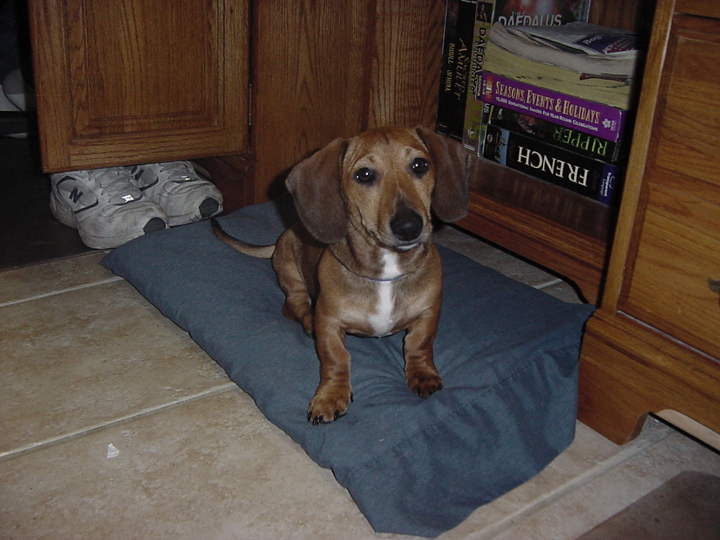 Oh my goodness...what a sweet little baby! I did not realize there was a minature version of a Dachshund. She looks like you could carry her around in your pocket! Your artwork is very cool. Love the retro flower one. Hope this little cutie enjoys her extra special day of fame.![]()