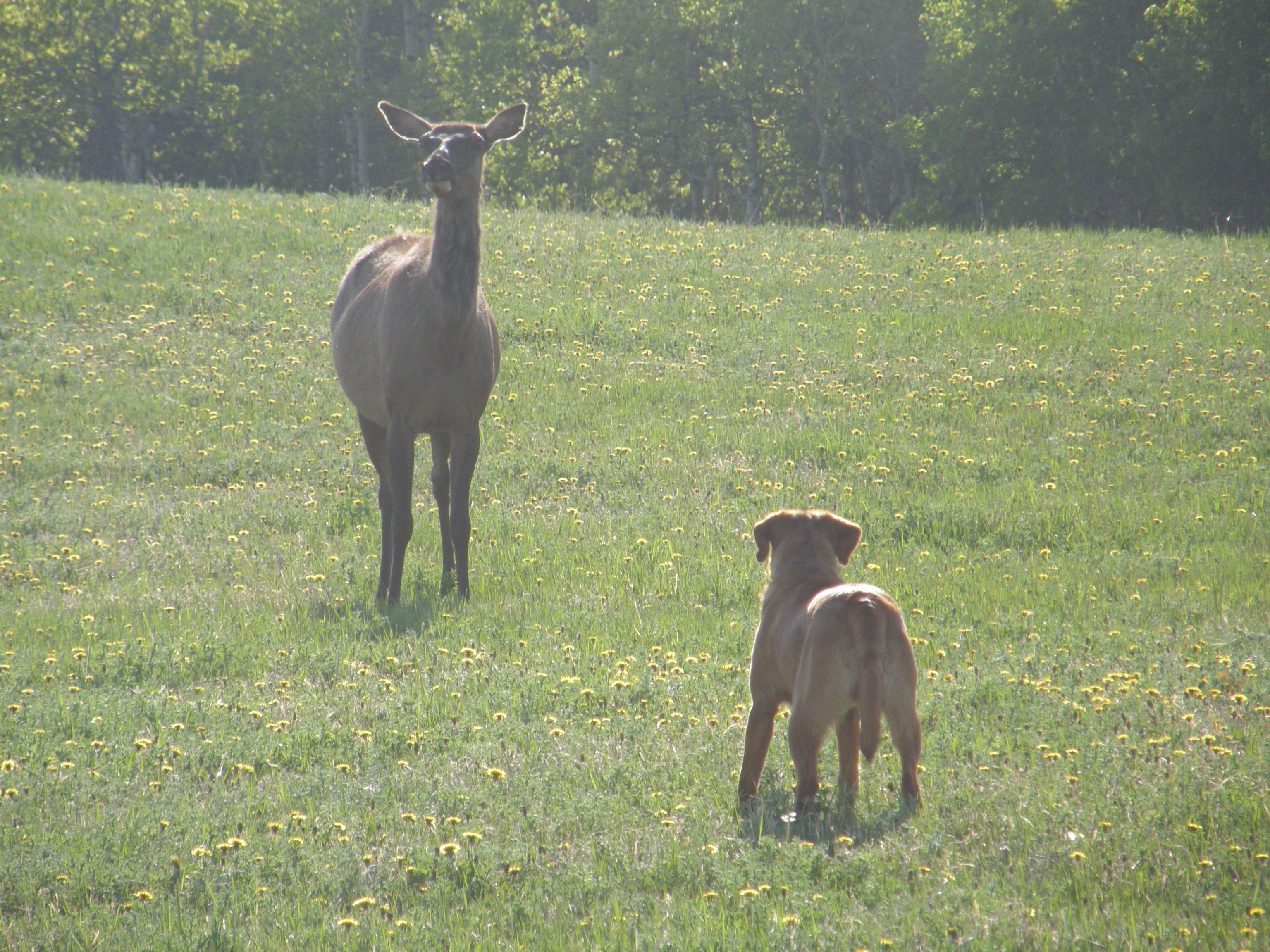 Wow, that dog has guts! If any of my dogs saw an elk they would be running the opposite way. Then again, most of my dogs are scared of kittens and the like.