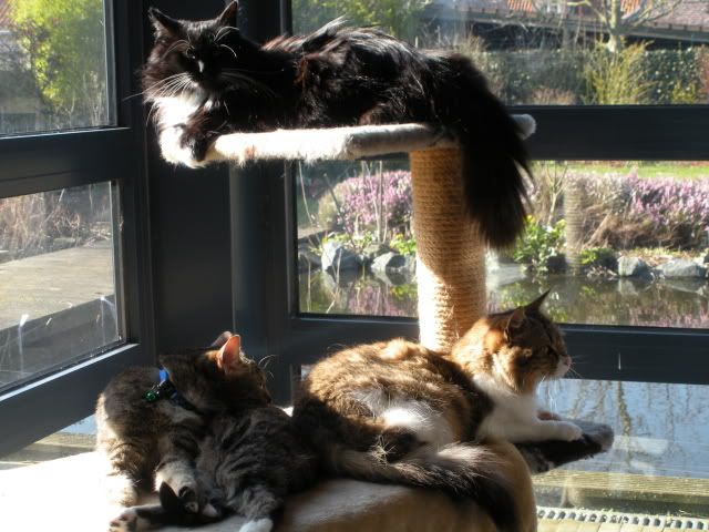 Nothing more pleasant than a cat tower of happy cats!![]()