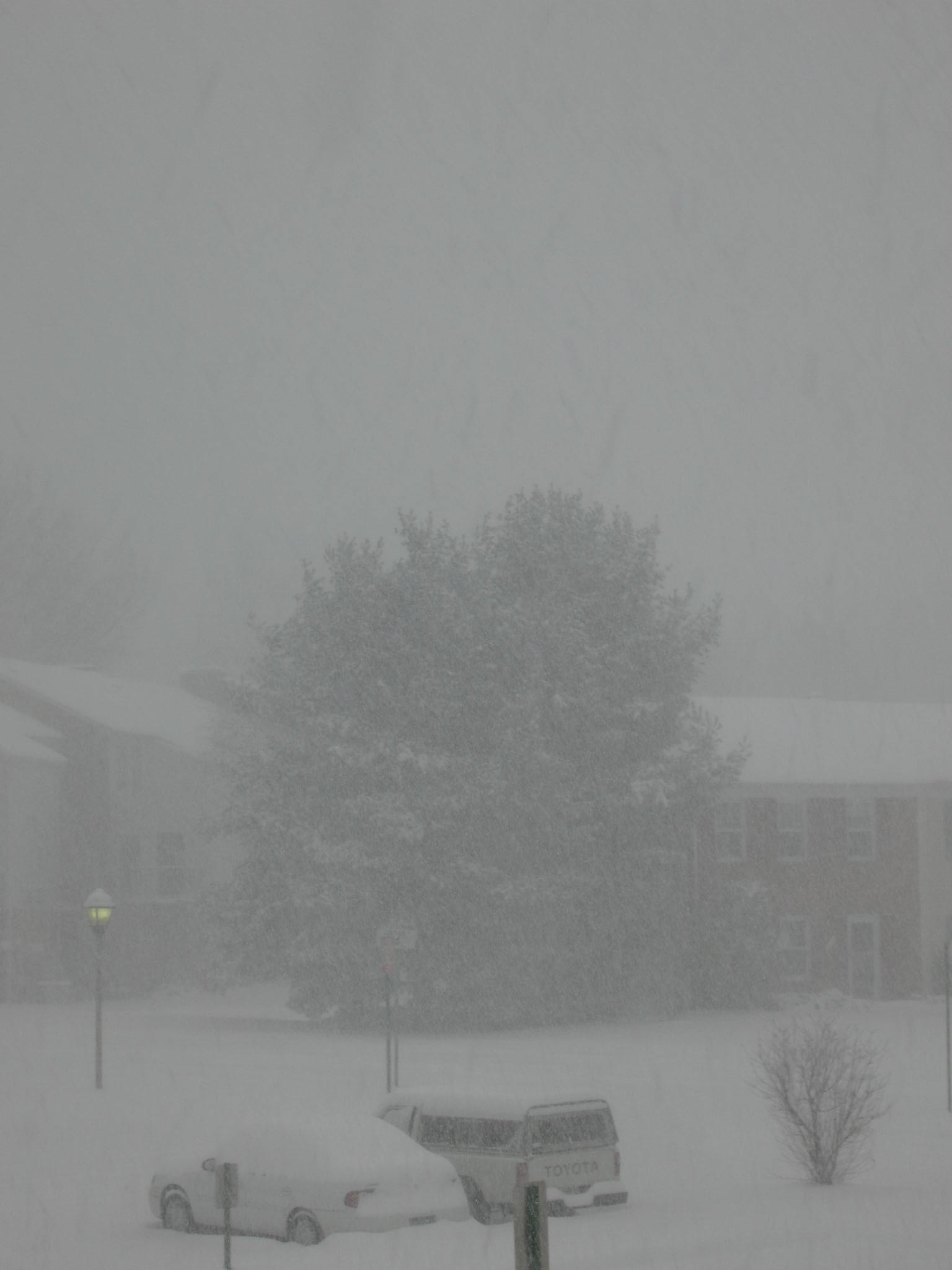 I think we have gotten at least 12 inches since 6am this am. I wanted some snow to have something pretty to look at, but not this much to keep me cooped up in the house.....It's so powdery, its neat. Here are a few pics I took of my balcony this morning, it's much deeper now. Anyone else affected by this storm?