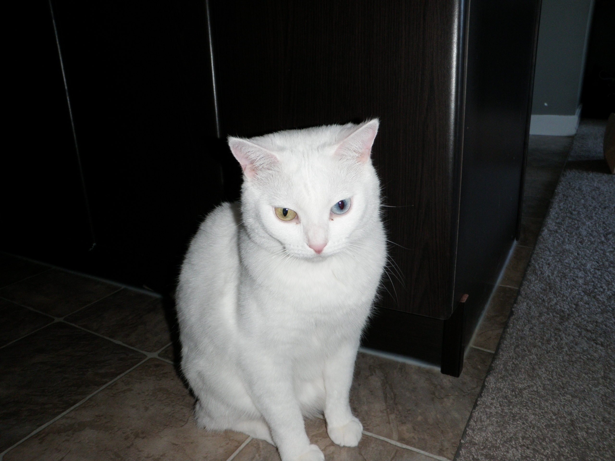 OH my gosh!!! Ok, Diego is the tabby, right? I love him!!! I don't think I remember Cali having two different color eyes. That's cool! (Sorry if I got their names backwards)