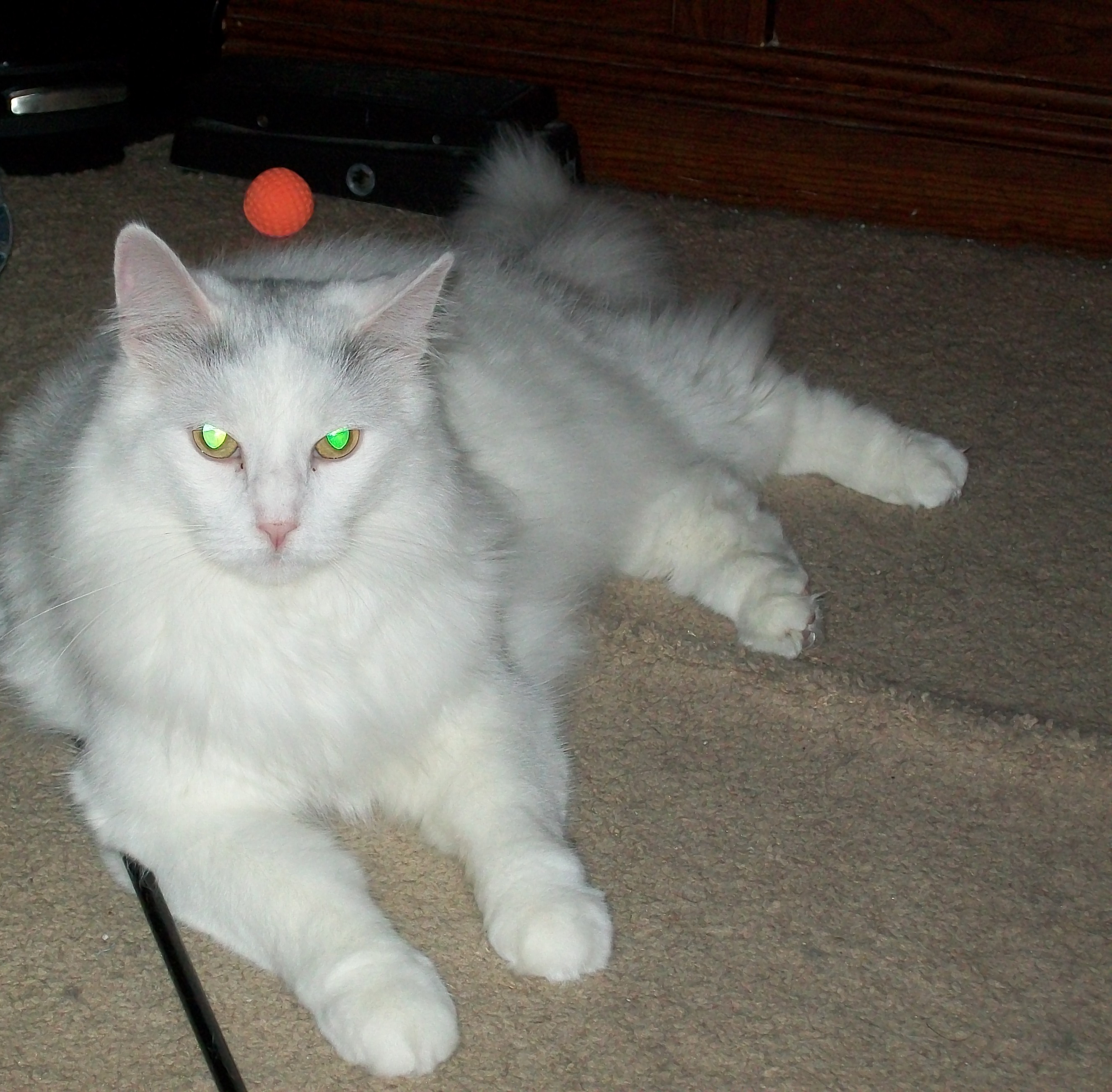 WOW - he grew from a cute fluffy little guy into a gorgeous long-haired fluffy big cat! Hugs and kissies to you on your 4th birthday, Hermes!