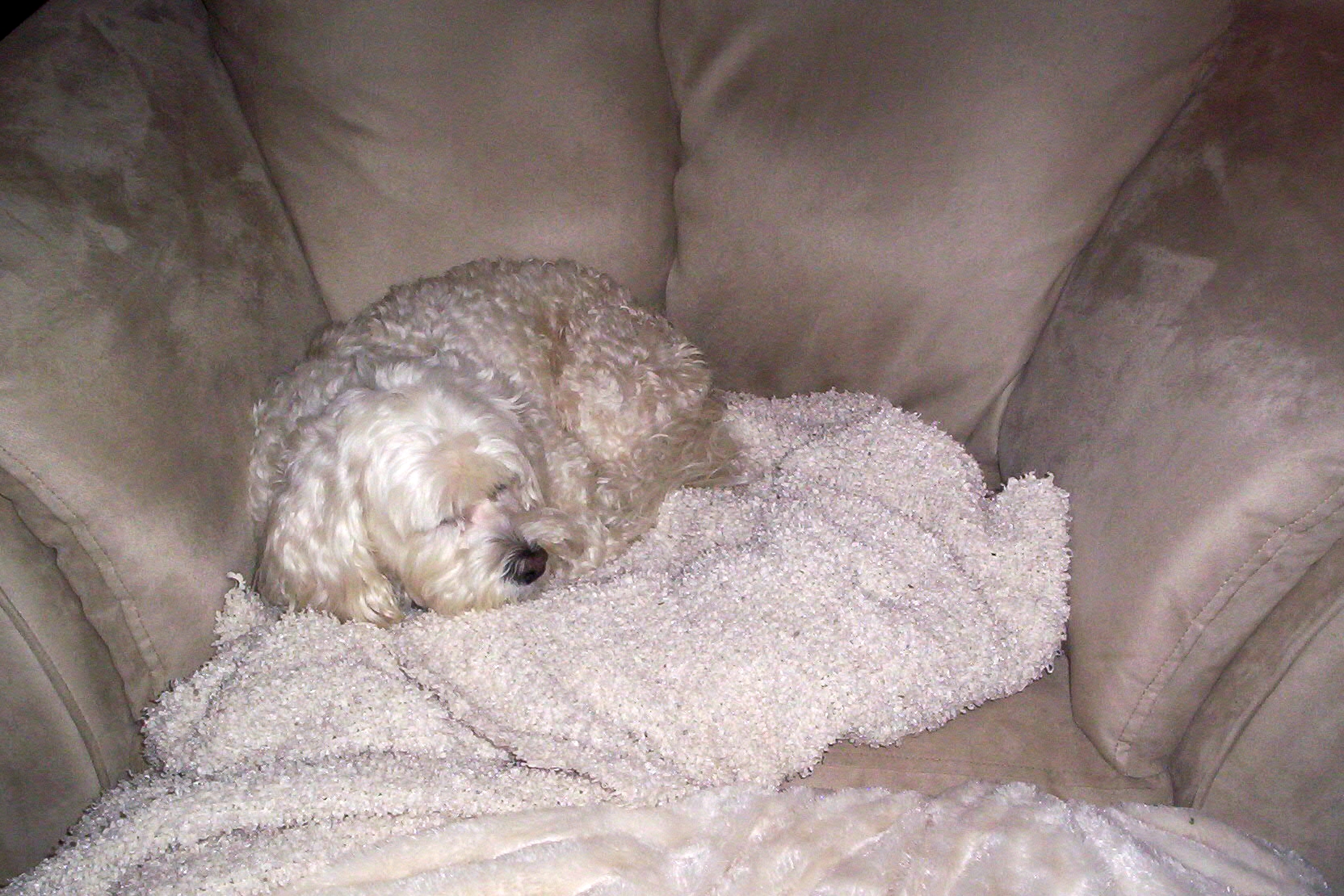 A lazy evening of snoozing in the tv room. I took over the Old Guy's recliner when he went to bed and that was nice. H and B had the couch. Janet was typing by the computer. I really have the most comfy spot in the room, as is my right. More later... zzzzzzzzz...