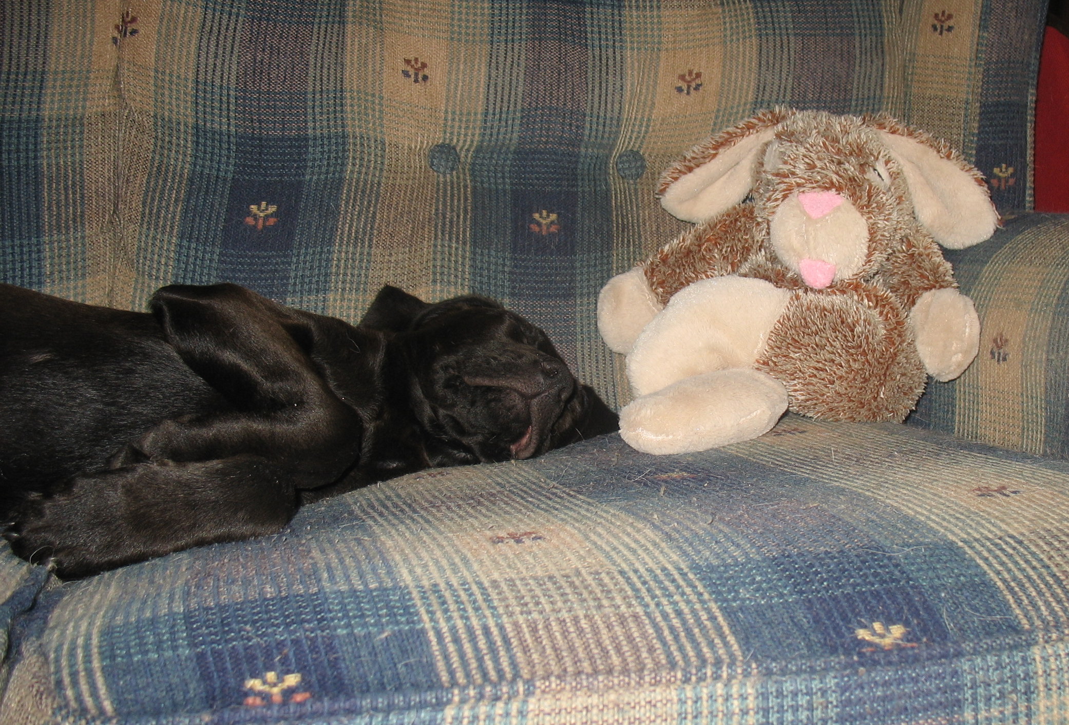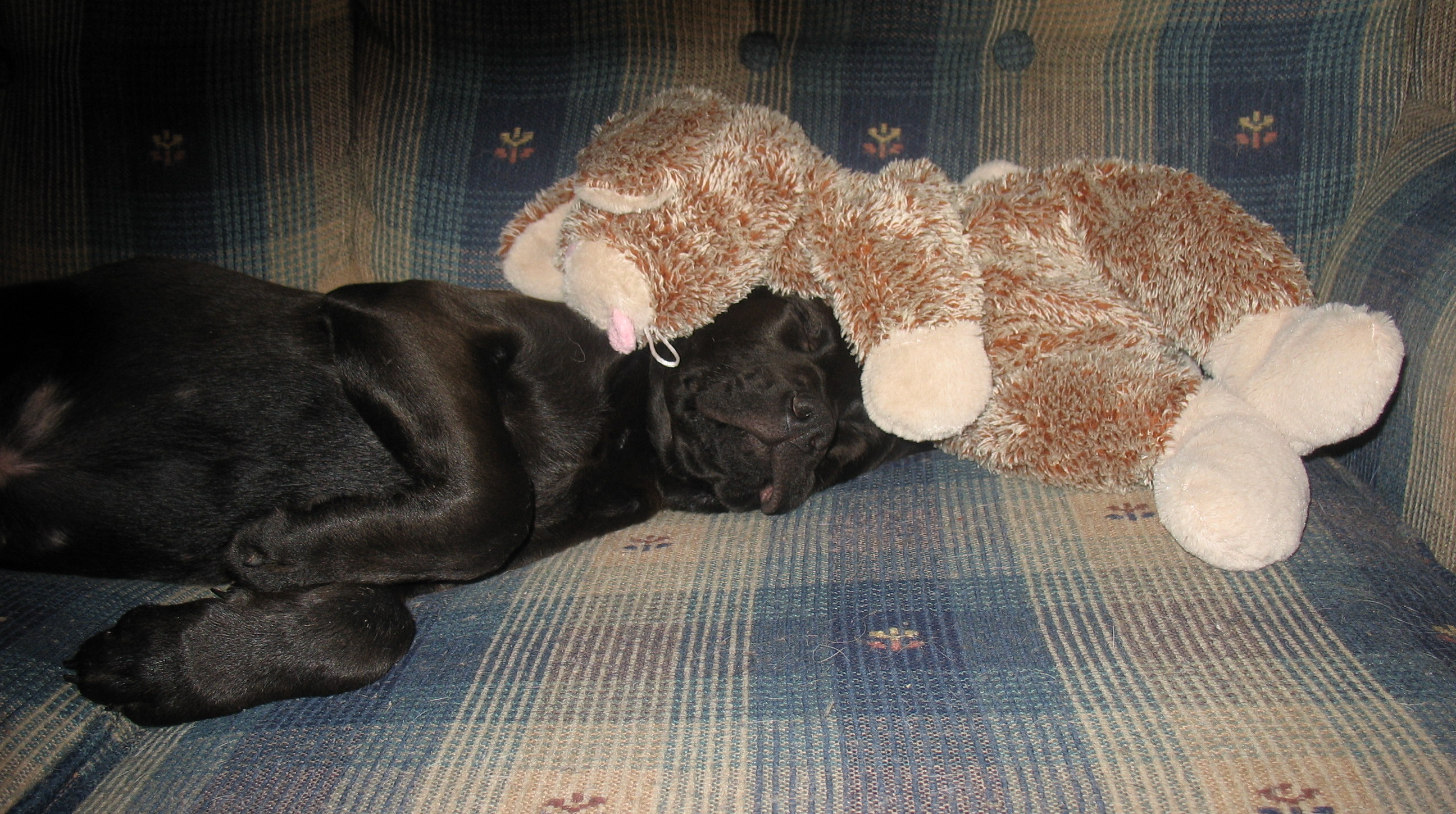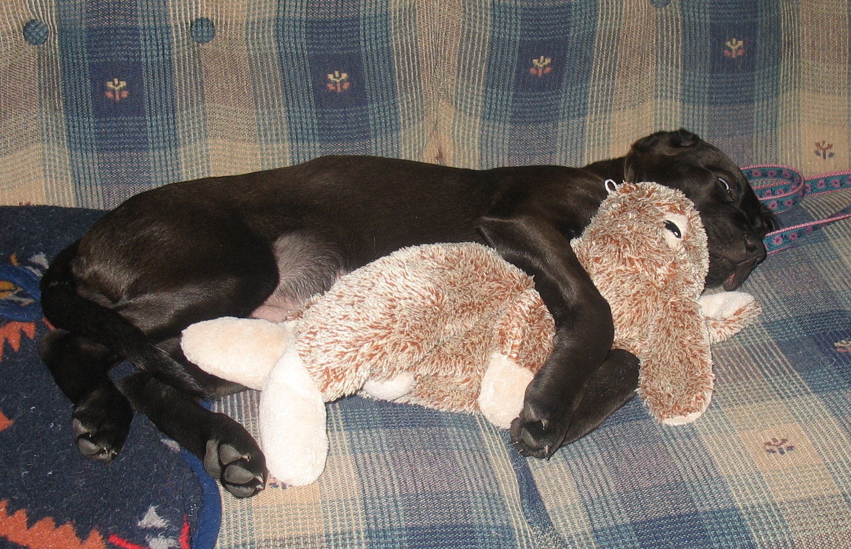 Here are some pics of her and her bunny. You can pretty much do anything to her when she is sleeping.