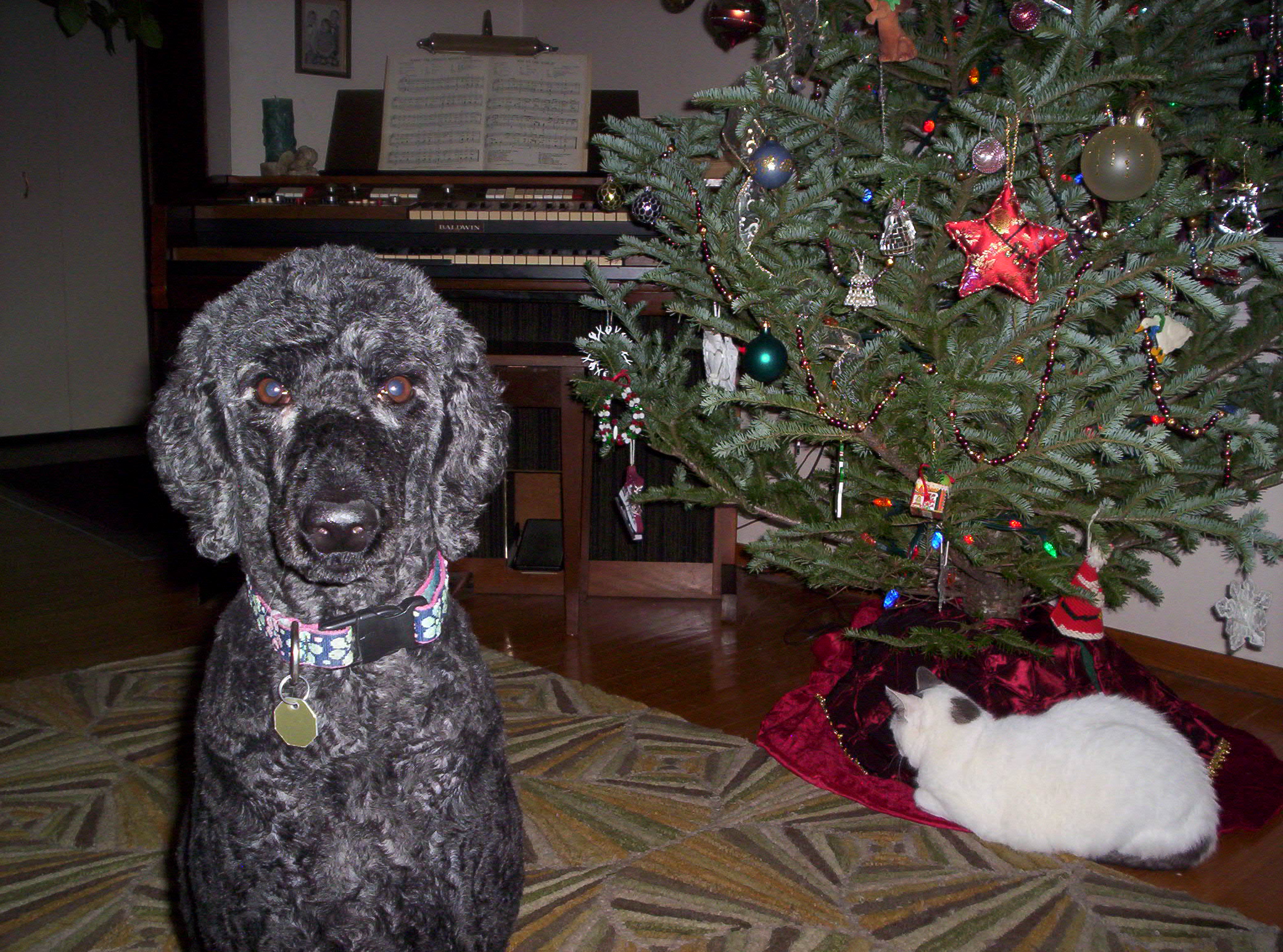 Happy holidays to allHere are a couple of photos of the pups. In the Christmas Tree shot, my girl Bodea is in the foreground and one of the kitties (Orlando) has discovered the joys of sitting under the Christmas tree, lol.