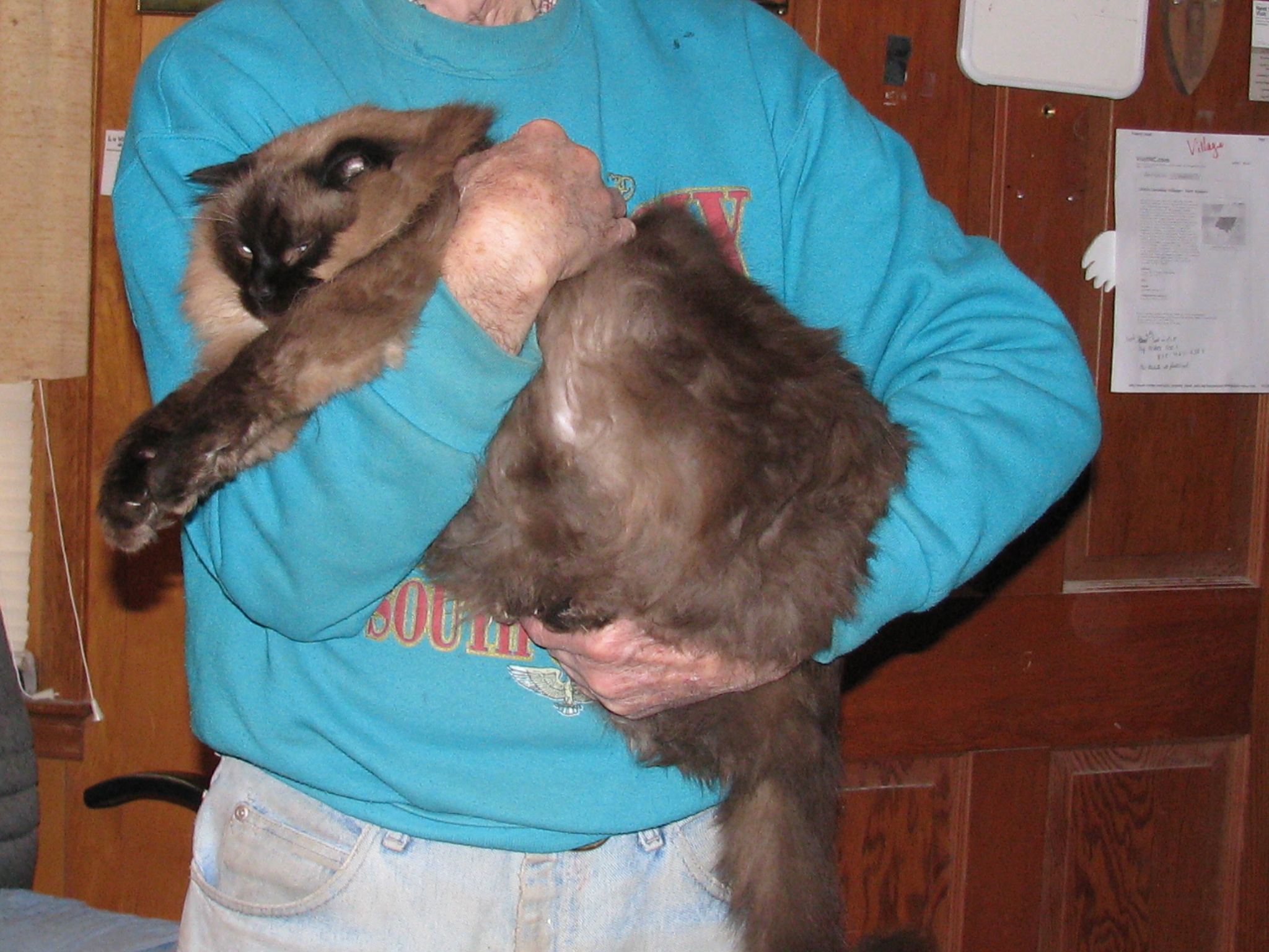 However, in Nov 2001 I saw the most beautiful little Persian-Siamese kitten up for adoption at a church event (Blessings of the Animals). The person was going to take the kittens to a shelter if they werent adopted. I knew I had a sweet little dog at home (Honey, a rat terrier) and she would not be happy to have a cat in the house. So, I told myself I could NOT get a kitten.