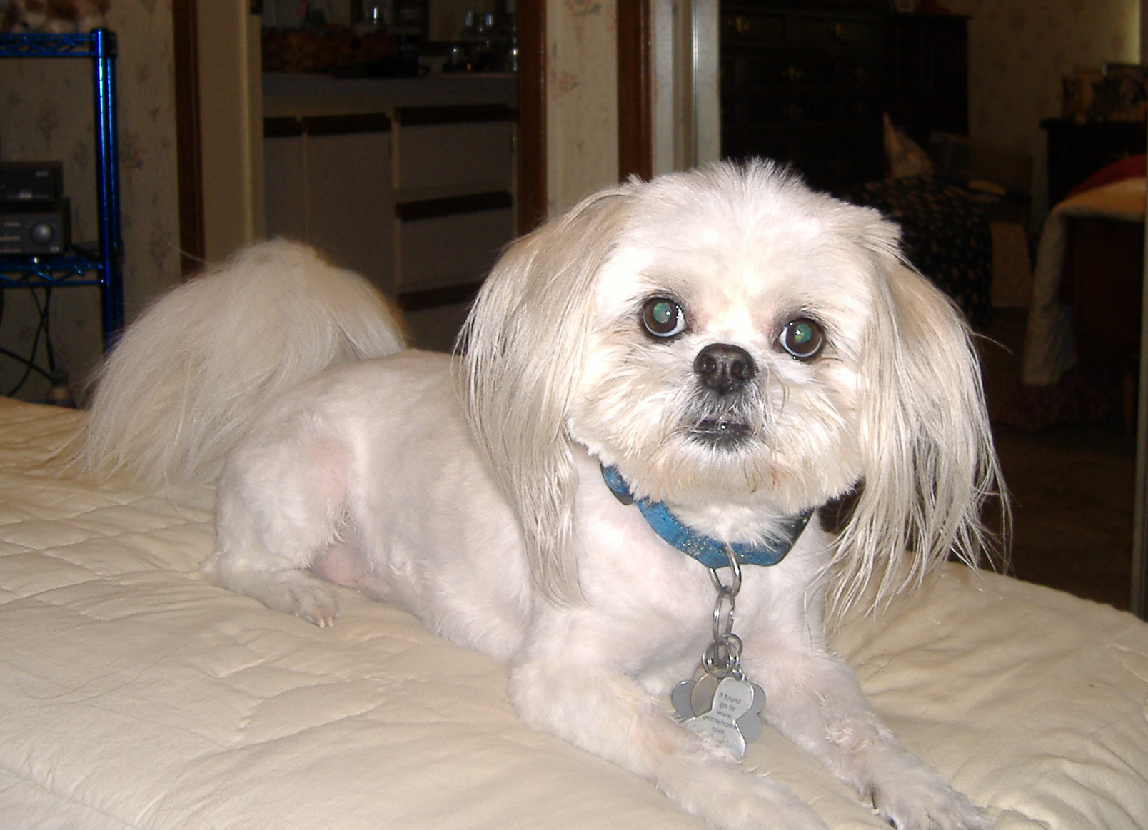 It was a nice day and Mom let me get away with just about anything I wanted, but I didn't make any trouble - just had some extra outdoor play time since the weather was nice. I was going to have a hamburger for lunch, but Mom found NO HAMBURG in the freezer, so it has to wait till she goes shopping on Friday. DARN!!! She also mentioned that she has a surprise coming up for me in the next couple of weeks, but I think I figured that one out. When the family starts calling me Teddy Bear or Pudge Ball or Marshmallow, then that means I'm getting too "fluffy" looking and it's time for a spa day and a mop crop! YUK! Wish we lived close to Aunt Sandie and The Fluffs - maybe I could go to The Freedom Spa instead of Petsmart. But I like my girl where I go and she always gives me a good report card, and Mom lets me walk thru the store and pick out a treat when she comes to pick me up too.
