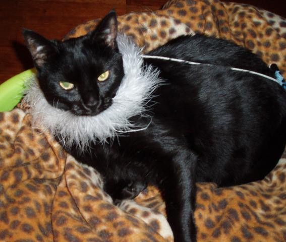 just sharing two pics of the kitties, my nikki as usual my most photogenic girl, here she is in dive position, just like mama used to do, and lexie sporting a new fancy collar,NO not really, was just fooling around with her play toy, she loves this toy, as you can see was not really upset that i made it look like a collar for the pic,although her face kinda looks miffed, she wasn't really i can assure you lol.
