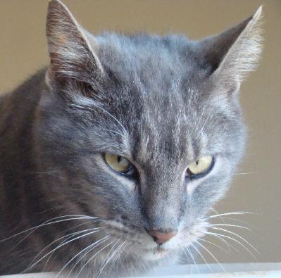 During these years Tiger had never shown much in the way of affection toward me -- he always chose to abide with me -- but he did not show any affection until about a year ago. Since then Tiger has grown more and more, little bit by little bit, affectionate in his attentions. Nowadays he will occasionally crawl into bed with me and insist on some head rubs.