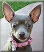 Dearest Ivy, what an utterly adorable young Chihuahua girl you are! You are so cute with that sweet face and the huge ears. You are full of energy and make your dear person smile with all your antics. You jump all around until being told to "Settle!" You love everyone but are cautious at first meeting someone. Once you've been introduced, then you are her or his good friend! You and your dear person love each other very much, don't you. What a delightful love-filled home you share!