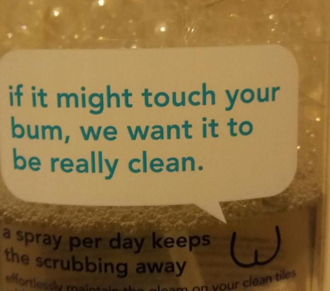 I have one of those daily shower cleaners at home. I never paid much attention to the bottle, until today: