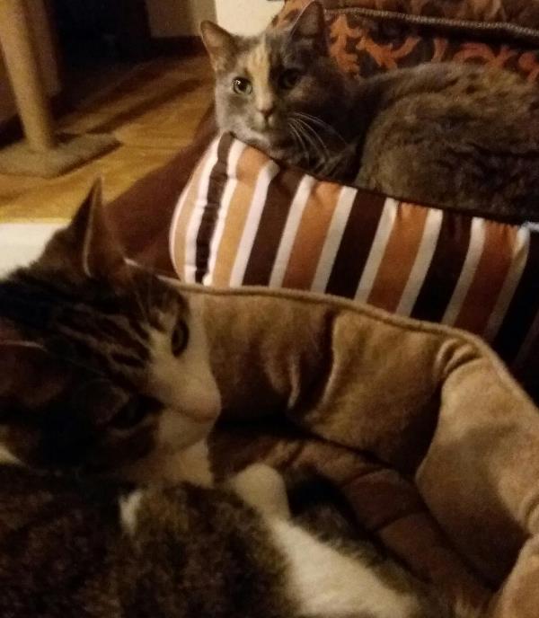 Olive, you'll both keep warm that way, so it does work... but look at that face!![]()