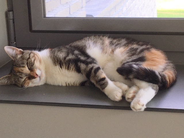 The shelter where she was, told us that she was held in a small room, together with a male cat