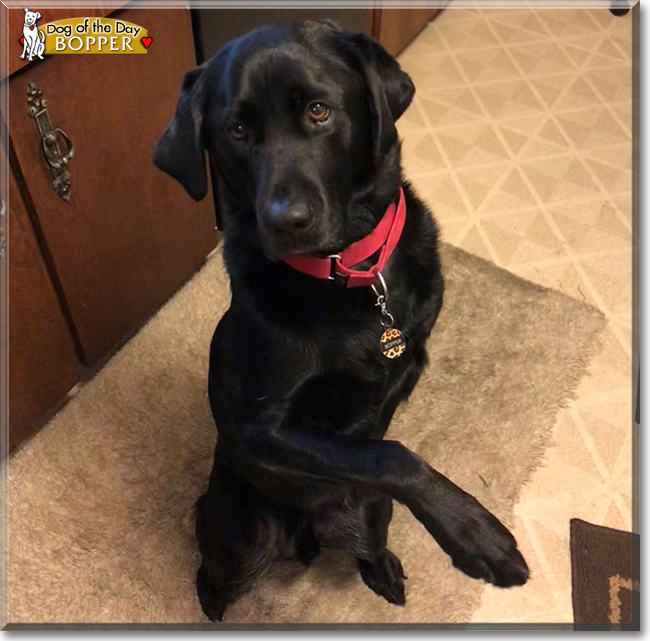Congratulations, darling Bopper, on being chosen Dog of the Day! We hope you and your dear people and all your family and friends are enjoying a fine celebration, full of fun and lovies and all your favorite games and treats. We know that Carlo Angel is rejoicing with you at the Rainbow Bridge!