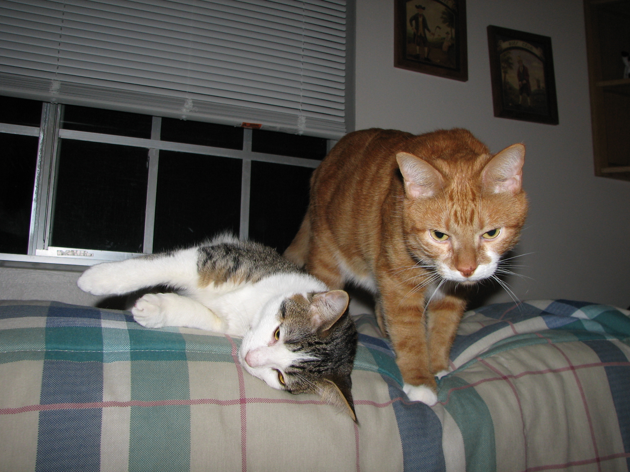 I caught Orion and Monte snuggling! The first picture is horrible quality but I didn't even bother to focus on them and snapped it before they moved. Orion does not like the be caught snuggling with Monte and as soon as he is, he moves.