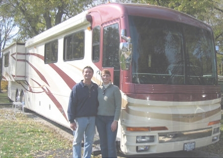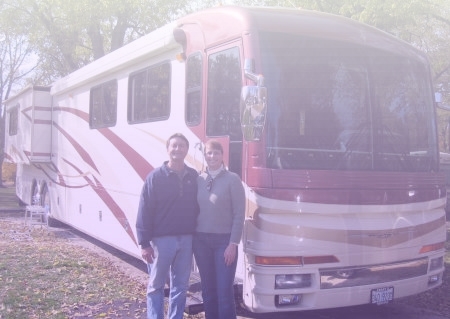 I'm trying to make "business cards" for the motorhome, so when we meet people we can give them a card with our info on it to keep in touch. What I would like to do is take this picture of us and the motorhome