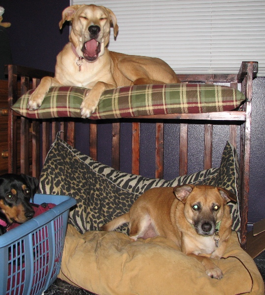 What sweet gifts, and you guys did a great job on them. A bunk-bed for dogs is a really great idea. I think it's funny that Ki prefers to sleep in a clothes basket- she's such a character!