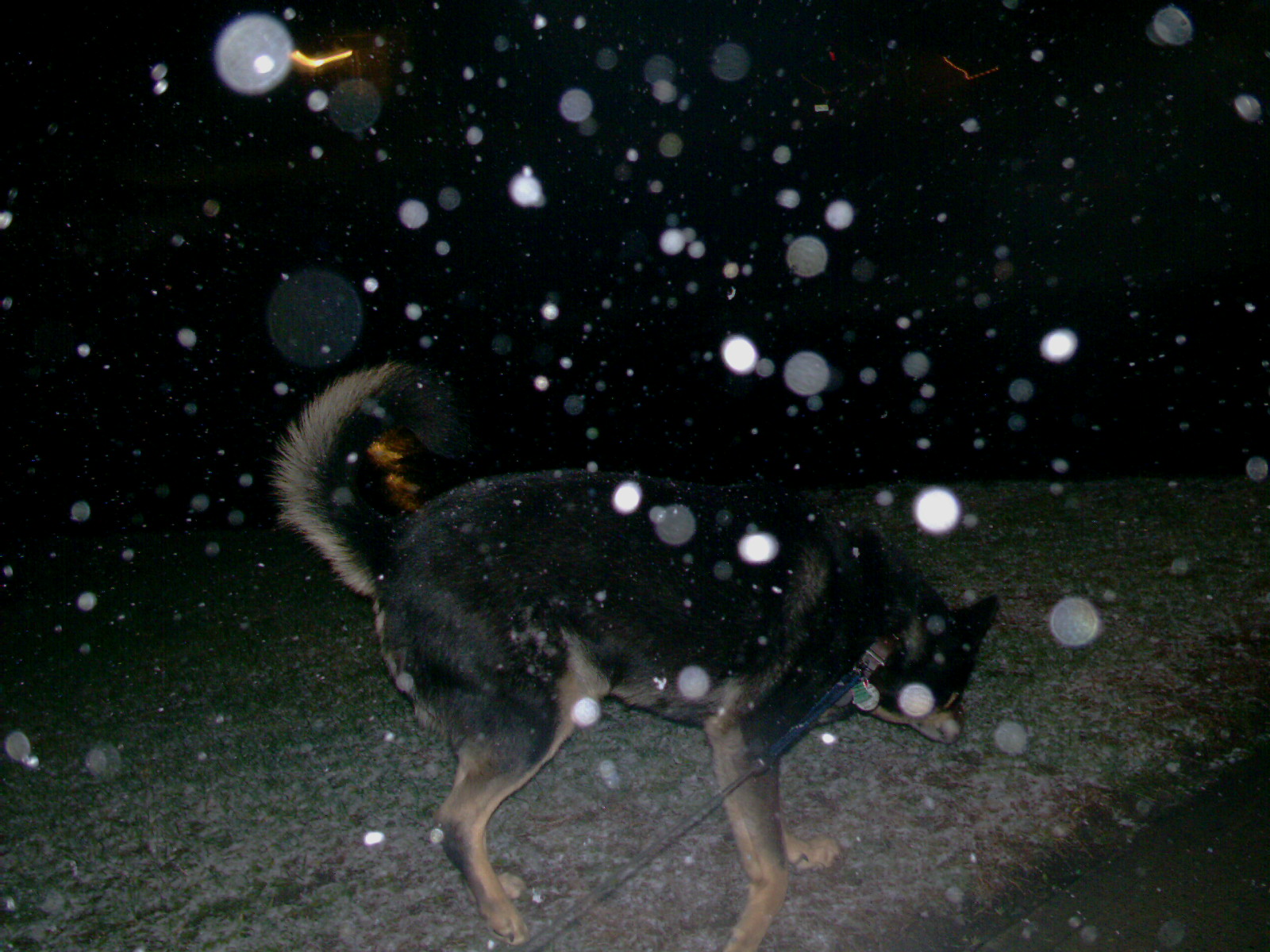 Last night, it started snowing, this is Rusty in it.
